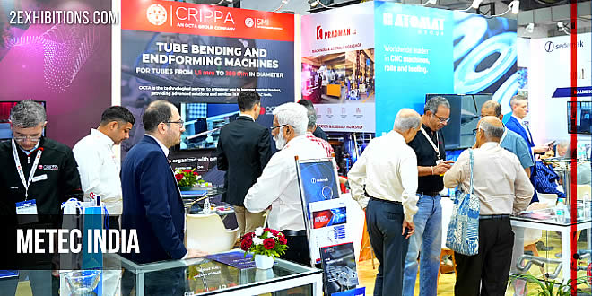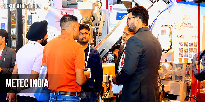 METEC India Exhibition held simultaneously with wire India and Tube India. plant & equipment for processing prime, raw materials, iron & steel making, non-ferrous metal production, casting and pouring of molten steel & non-ferrous metals, shaping of steel, shaping of non-ferrous metals, gas purification; services for metallurgical plants and rolling mills etc.