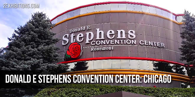 The Donald E. Stephens Convention Center, formerly known as the Rosemont / O’Hare Exposition Center, is a convention center located in Rosemont, Illinois, a suburb of Chicago. Built in 1975, the center has exhibition space of 840,000 sq ft (78,000 m2) and parking available via a Skybridge connected parking garage, which is able to accommodate 8,000 vehicles. It is located near O’Hare International Airport, Allstate Arena, Rosemont Theatre, and Fashion Outlets of Chicago. The facility is named after the late mayor of Rosemont, Donald E. Stephens.